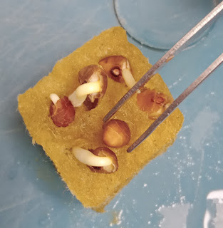 Hari ke-3 (07/12) atau setelah 48 jam bungkus plastik dibuka. Benih biji berkecambah mulai banyak meski masih ada yang belum.